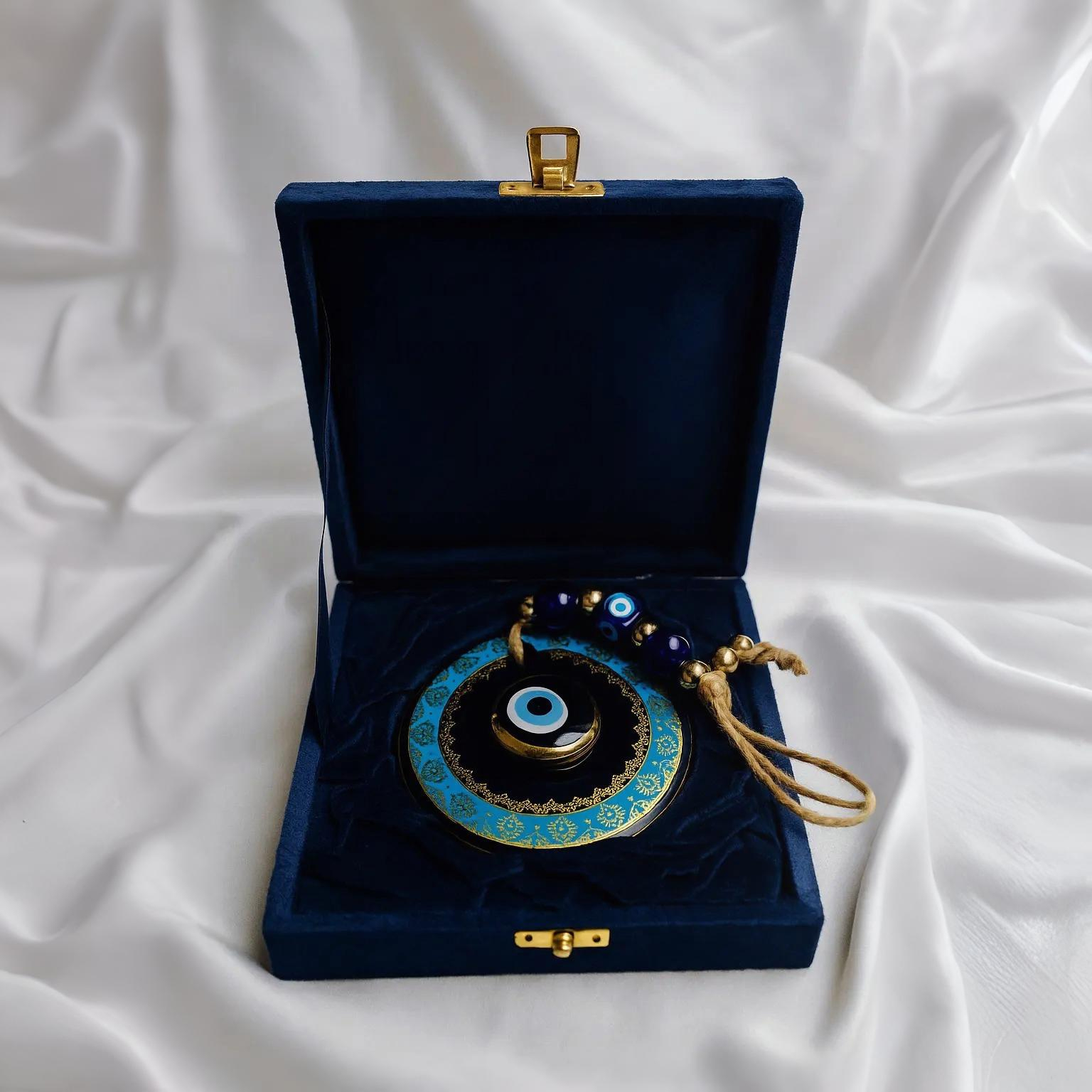 Beaded Accent String: Embellished with glossy deep blue and gold beads, along with a cube-shaped evil eye charm—adding movement, beauty, and enhanced protective energy.